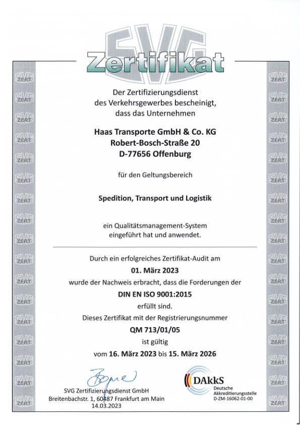 Haas Transporte GmbH & Co. KG | Robert-Bosch-Straße 20 | 77656 Offenburg